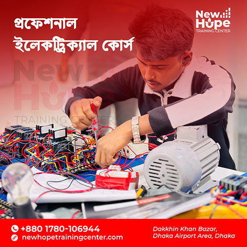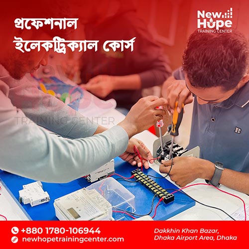 New Hope Training Center is a professional electrical training institute in Dhaka. We provide hands-on courses in house wiring, industrial wiring, and electrical control. Our mission is to build skilled, self-reliant, and certified electricians for Bangladesh and abroad. Established in 2025, New Hope Training Center is a modern, professional, and technology-driven electrical training institute dedicated to empowering the young generation of Bangladesh to become skilled, self-reliant, and internationally competent electrical technicians.